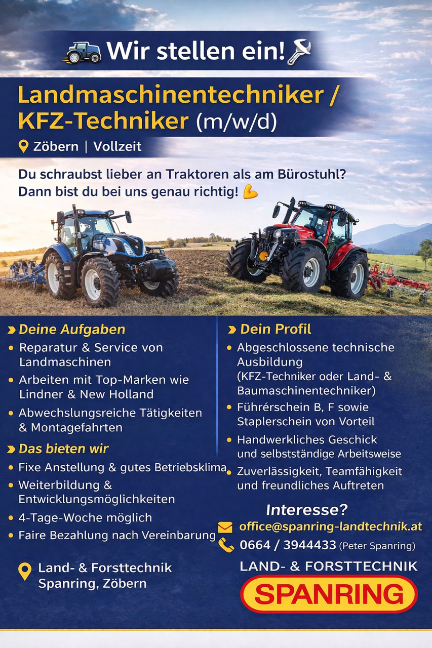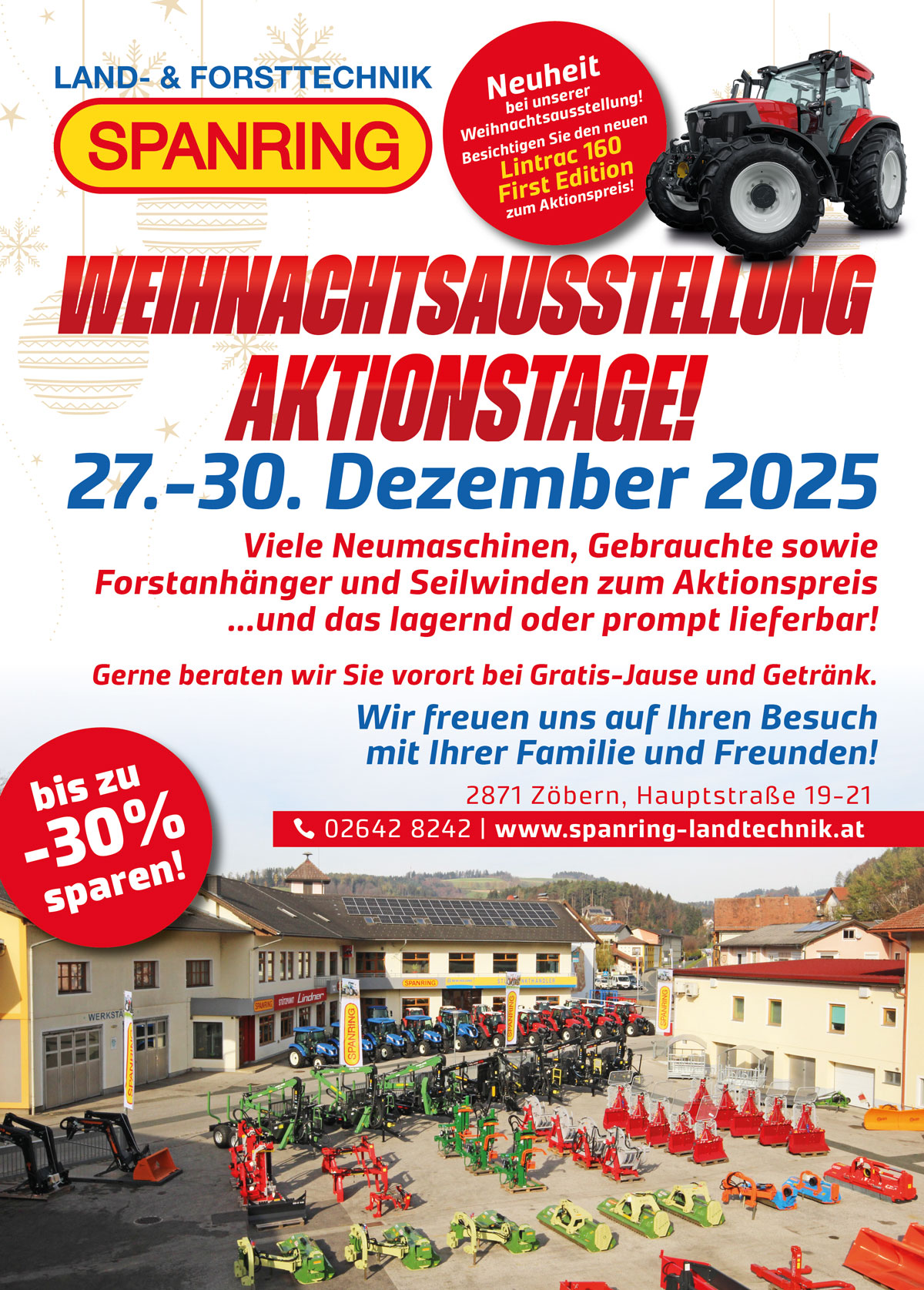 Besuchen Sie unsere traditionelle Weihnachtsaustellung vom 27.12-30.12.2025 bei uns in Zöbern!📍🌲🚜 Entdecken Sie den neuen Lindner Lintrac 160 LDrive und viele weitere Maschinen namhafter Hersteller Mehr sehen